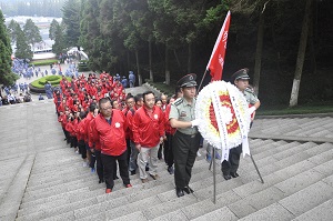 ??? 培訓(xùn)期間,大家排著整齊的隊(duì)伍登上寬闊的臺(tái)階,緩緩步入井岡山革命烈士紀(jì)念堂,祭奠儀式在瞻仰大廳舉行,學(xué)員們向在井岡山革命戰(zhàn)爭時(shí)期英勇捐軀的革命先烈進(jìn)獻(xiàn)花圈,致以崇高的敬意,并向革命先烈默哀、鞠躬。